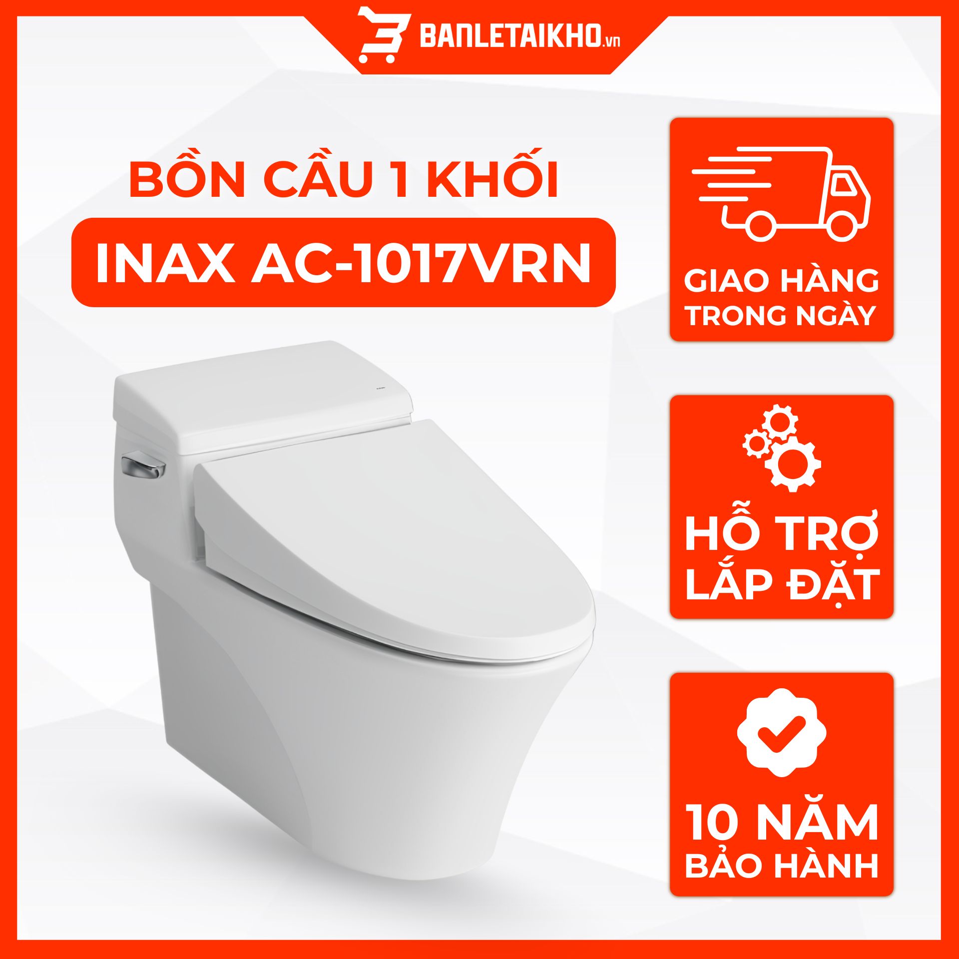 Trải nghiệm mua sắm hoàn hảo với xí bệt liền khối inax AC1017 chính hãng tại INAX Bán Lẻ Tại Kho, với cam kết: