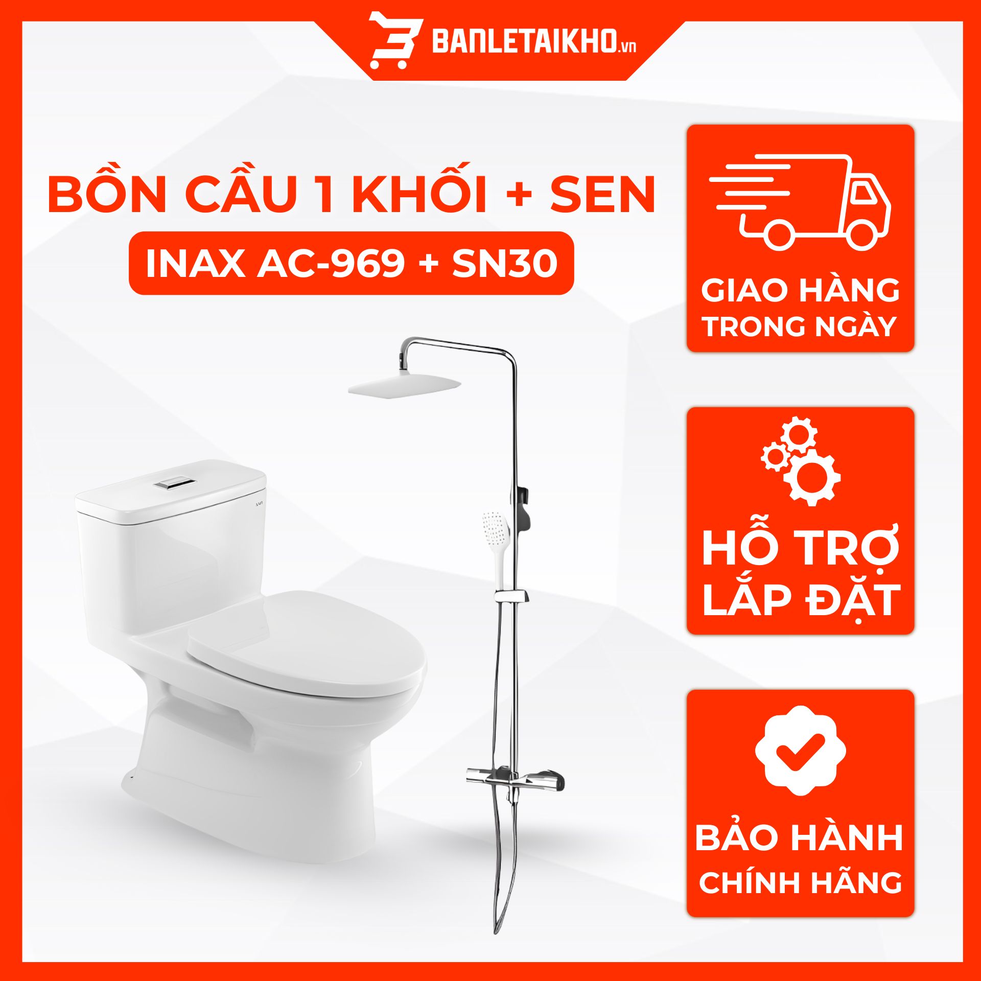 Đặt mua Combo Thiết Bị Vệ Sinh INAX Bồn Cầu AC-969VN Và Sen Cây SN30